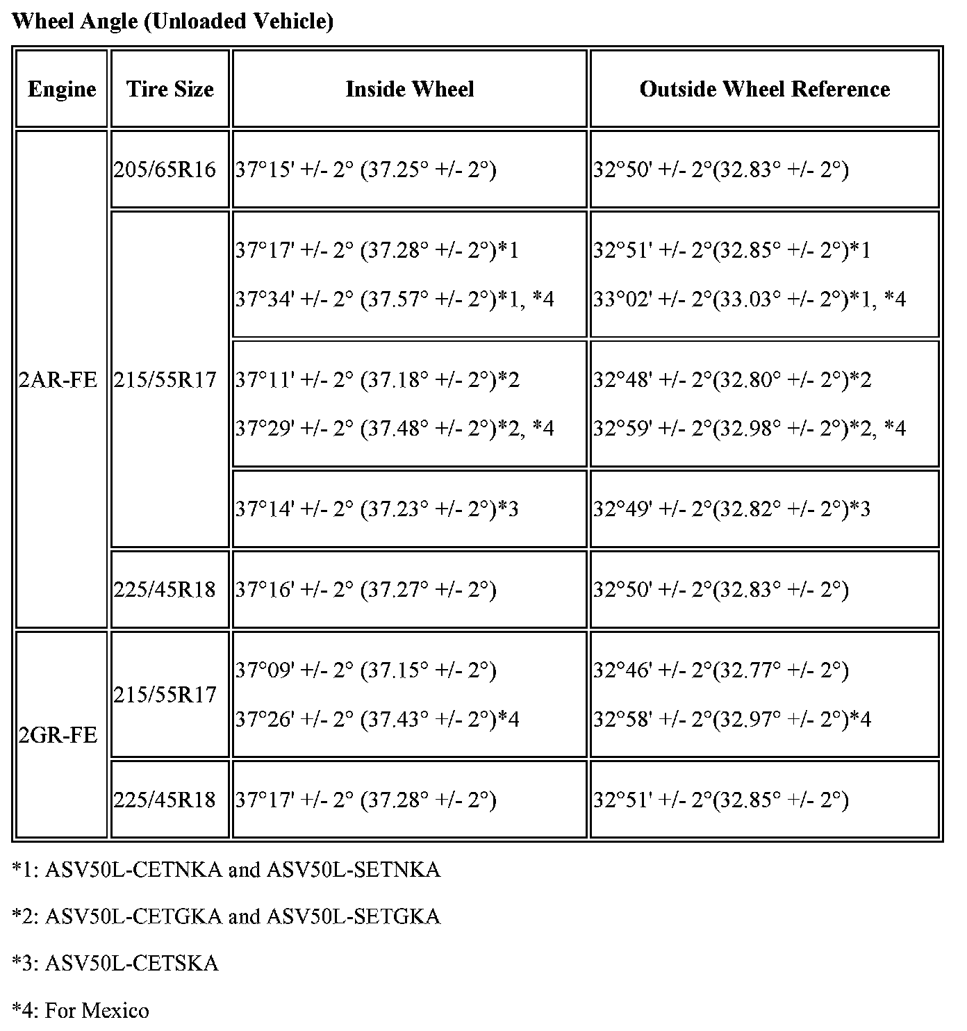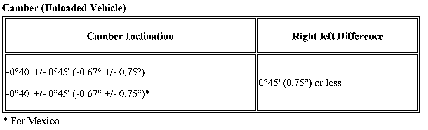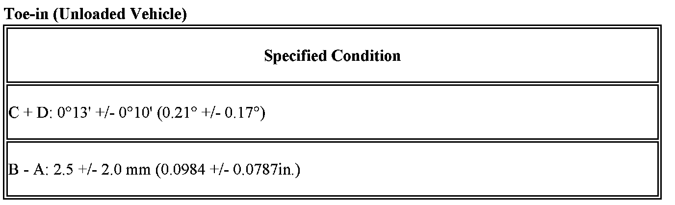 HINT: Camber is not adjustable. If the measurement is not within the specified range, inspect the suspension parts for damage and/or wear, and replace them if necessary.