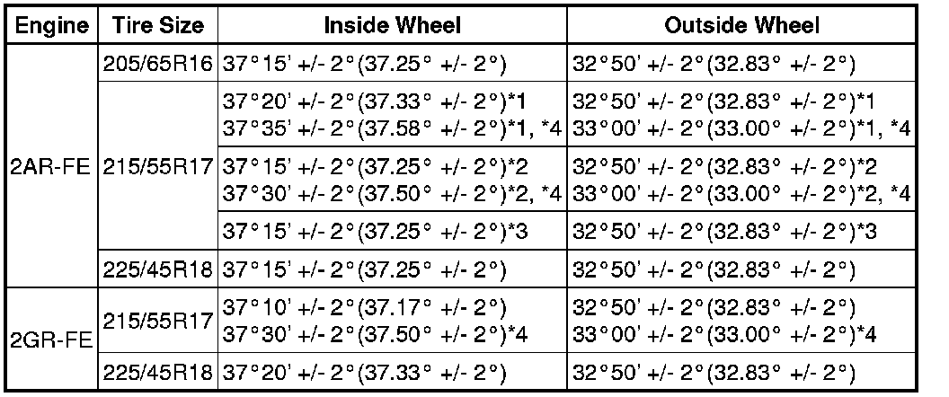 WHEEL ALIGNMENT SPECIFICATIONS (UNLOADED VEHICLE)