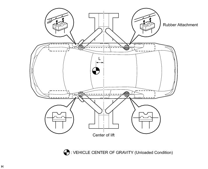 (c) Position the vehicle so that its center of gravity is centered on the lift (length of "L" in the illustration should be as short as possible).
