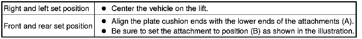 (c) Be sure to set the vehicle to the specified position described in the following chart and shown in the following illustration.