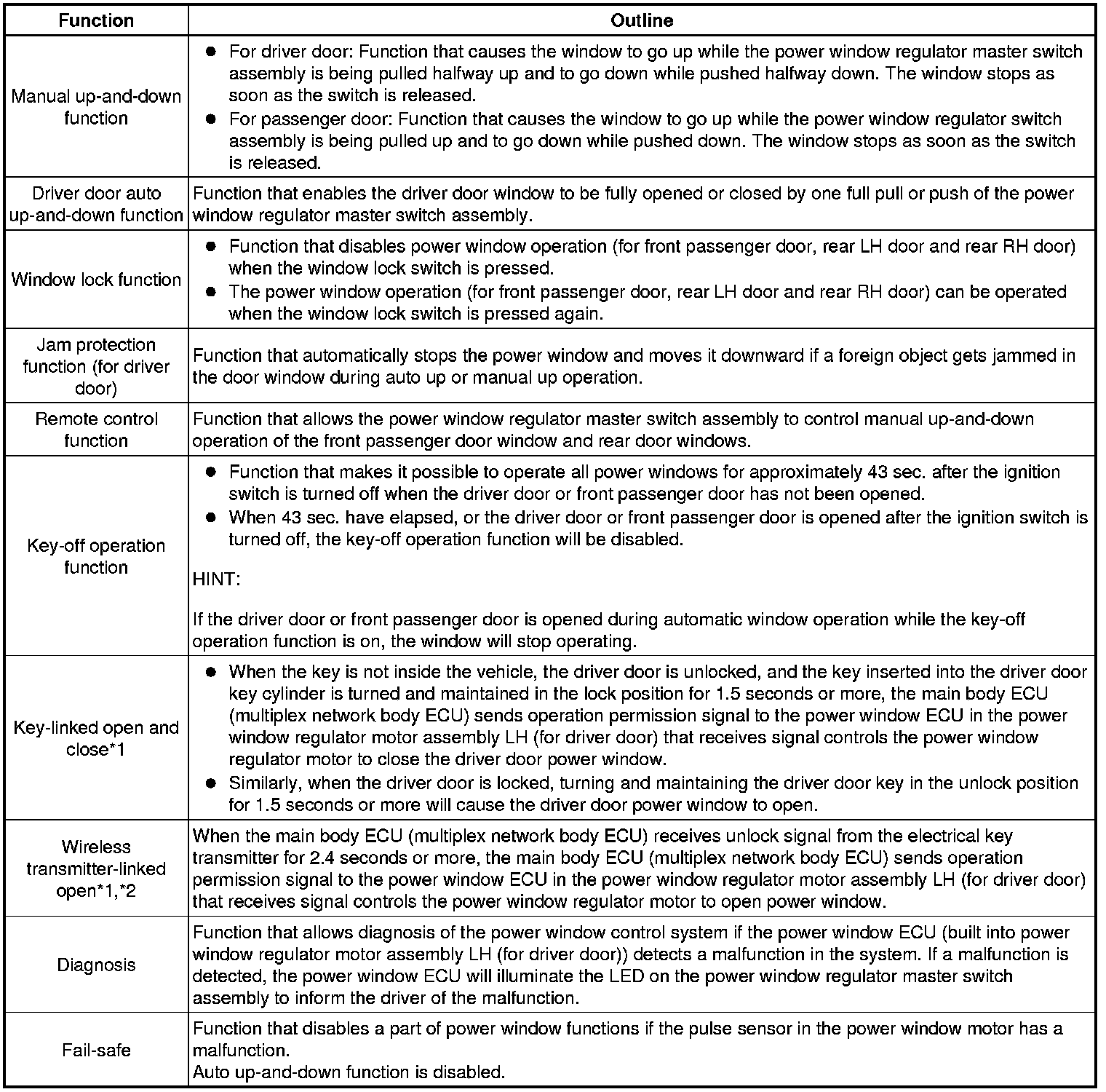 WINDOW / GLASS: POWER WINDOW CONTROL SYSTEM: SYSTEM DESCRIPTION