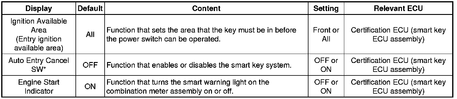 THEFT DETERRENT / KEYLESS ENTRY: SMART KEY SYSTEM (for Start Function): CUSTOMIZE PARAMETERS