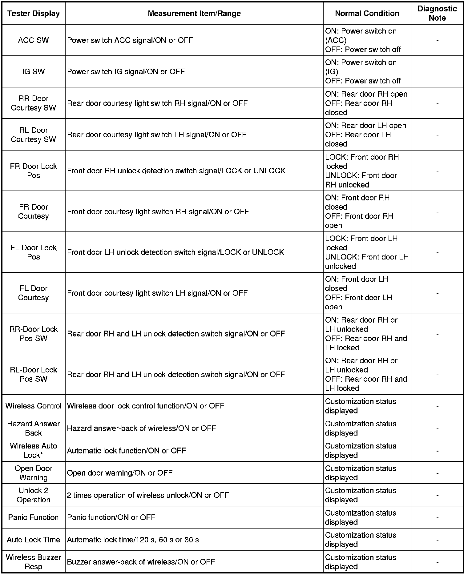 DOOR LOCK: WIRELESS DOOR LOCK CONTROL SYSTEM: DATA LIST / ACTIVE TEST