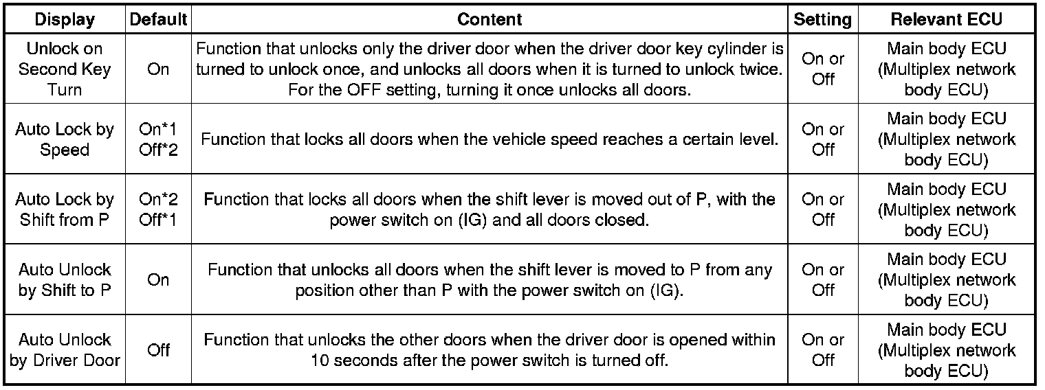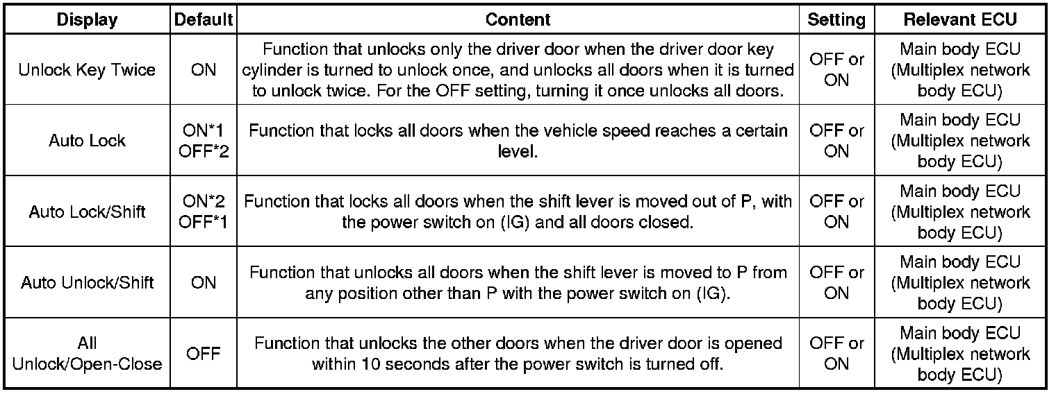 DOOR LOCK: POWER DOOR LOCK CONTROL SYSTEM: CUSTOMIZE PARAMETERS