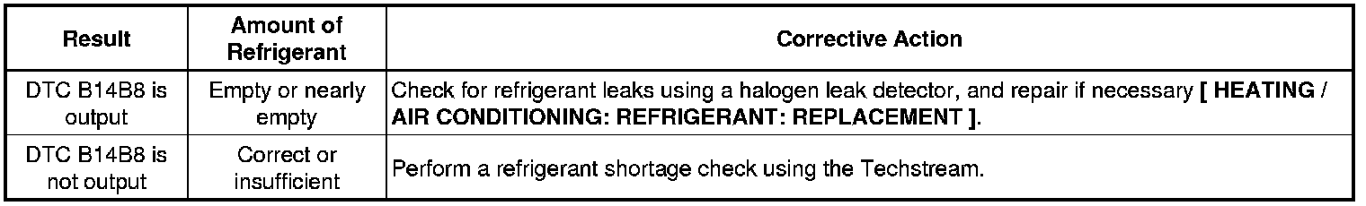 * DTCs are not stored when performing the refrigerant shortage check using the Techstream.