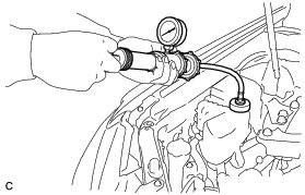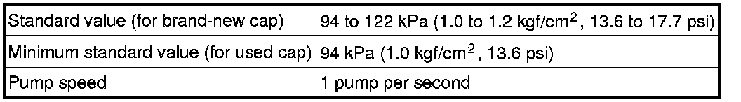 (c) Pump the radiator cap tester to 122 kPa (1.2 kgf/ cm2, 17 psi), and then check that the pressure does not drop.