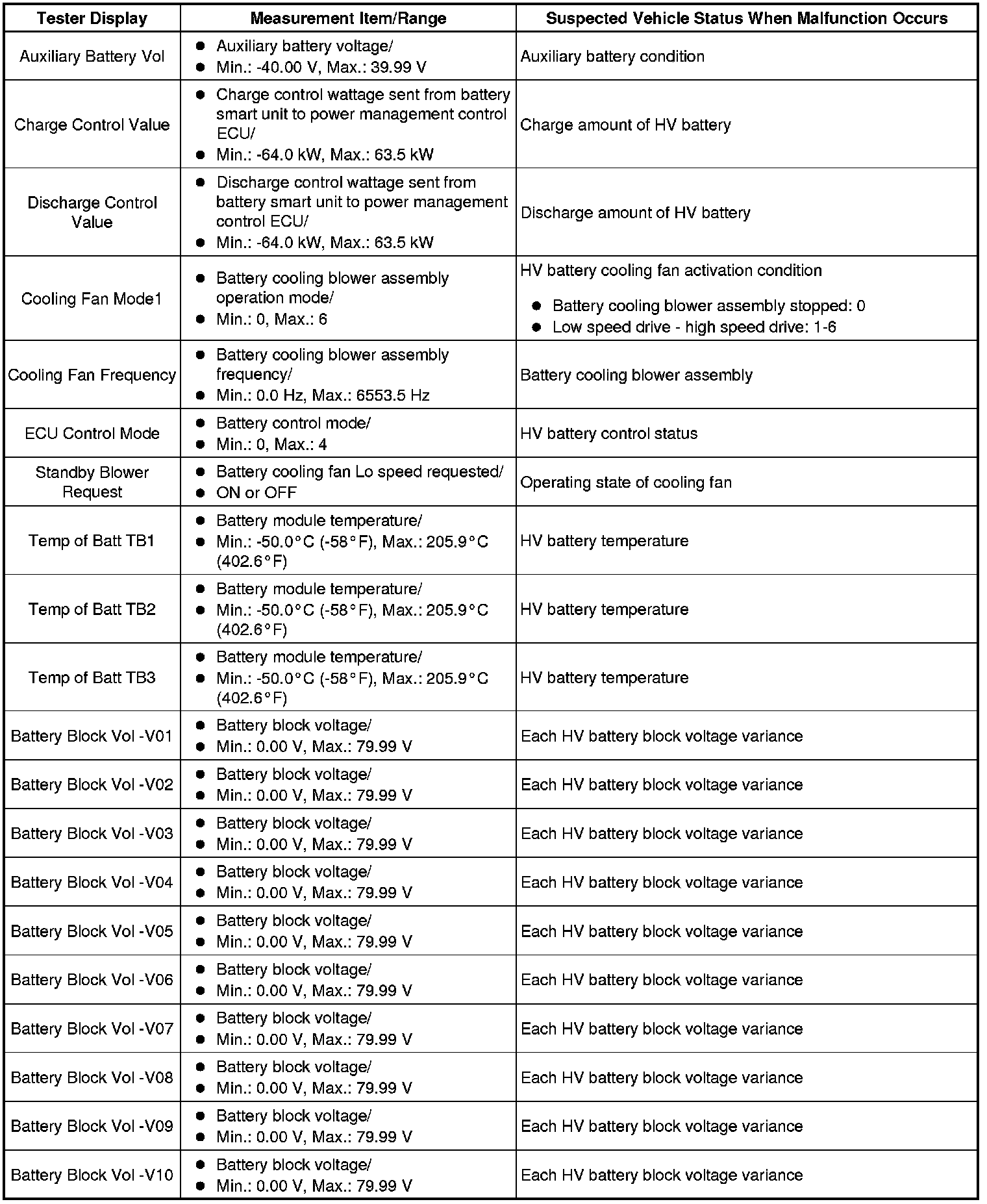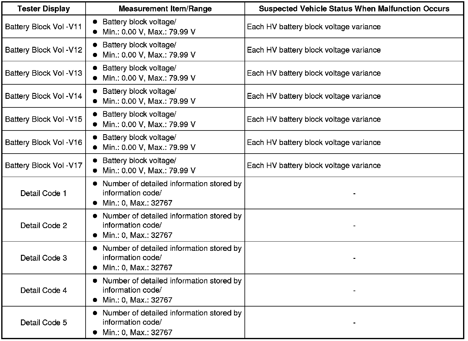 HYBRID / BATTERY CONTROL: HYBRID CONTROL SYSTEM: INFORMATION / FREEZE FRAME DATA