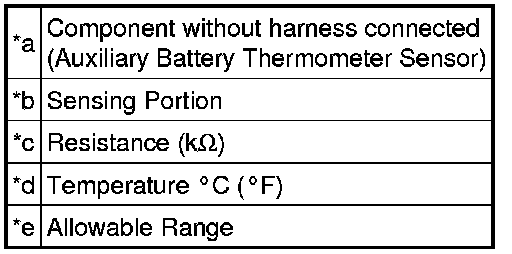 If the resistance is not as specified, replace the auxiliary battery thermometer sensor.