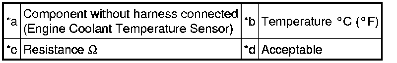 If the result is not as specified, replace the engine coolant temperature sensor.