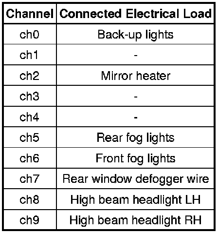 * Regarding electrical loads connected to channels 0 to 9, refer to the table below: