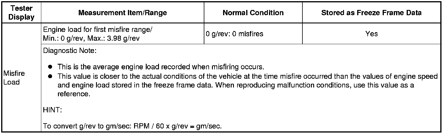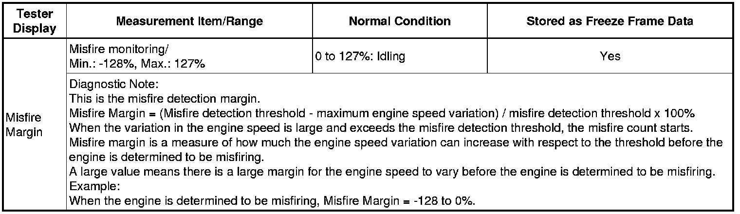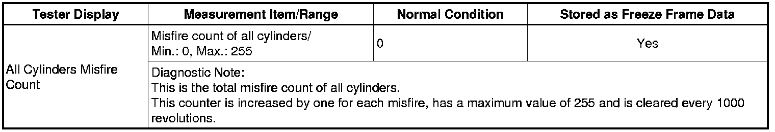Cylinder #1 Misfire Count to Cylinder #4 Misfire Count