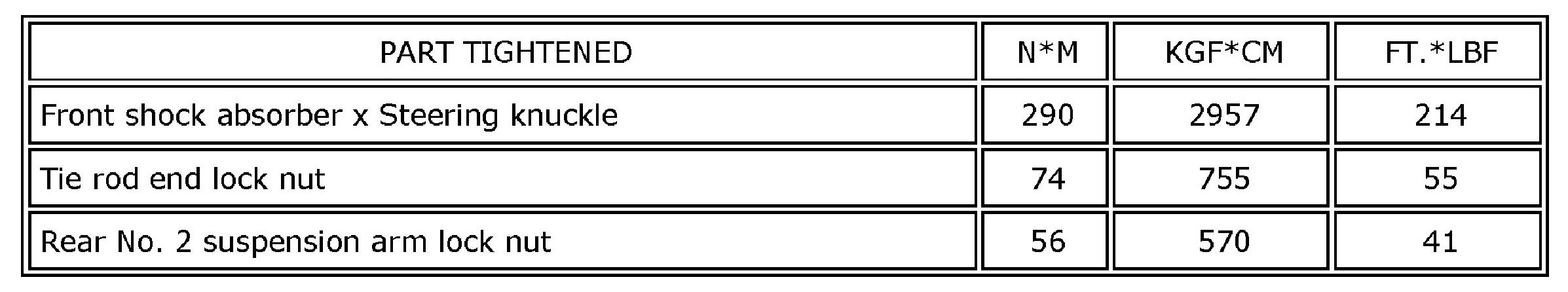 SPECIFICATIONS: ALIGNMENT / HANDLING DIAGNOSIS: TORQUE SPECIFICATIONS
