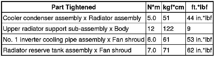 SPECIFICATIONS: 2AR-FXE COOLING: TORQUE SPECIFICATIONS
