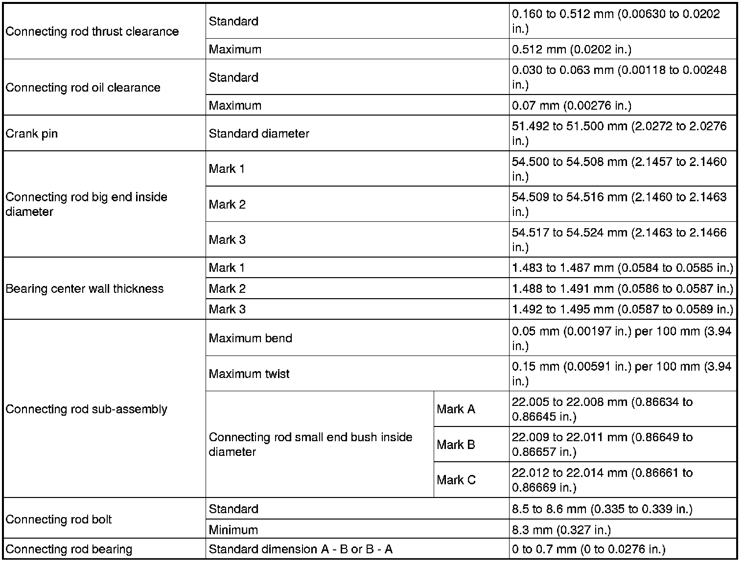 Connecting Rod Side Cleareance, Standard and Limit