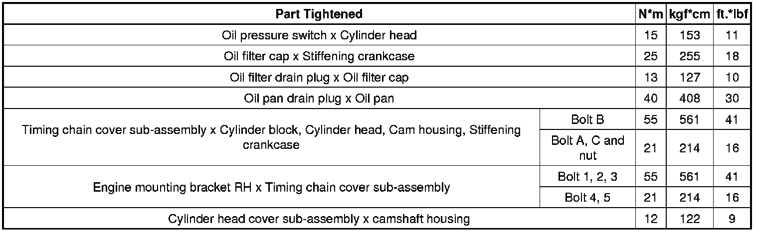 SPECIFICATIONS: 2AR-FXE LUBRICATION: TORQUE SPECIFICATIONS
