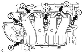 Tighten the 6 bolts in the order shown in the illustration.