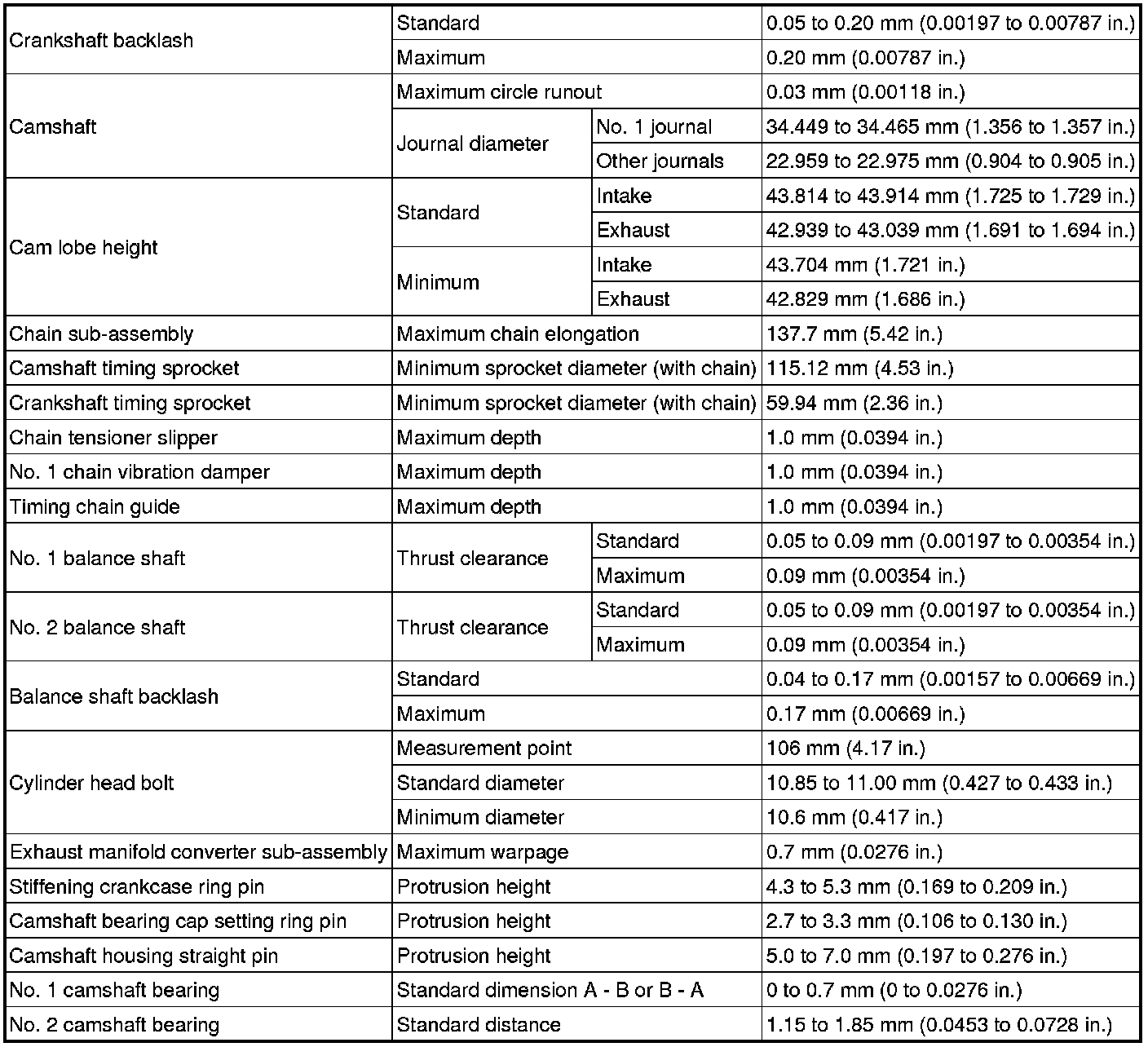 SPECIFICATIONS: 2AR-FXE ENGINE MECHANICAL: SERVICE DATA