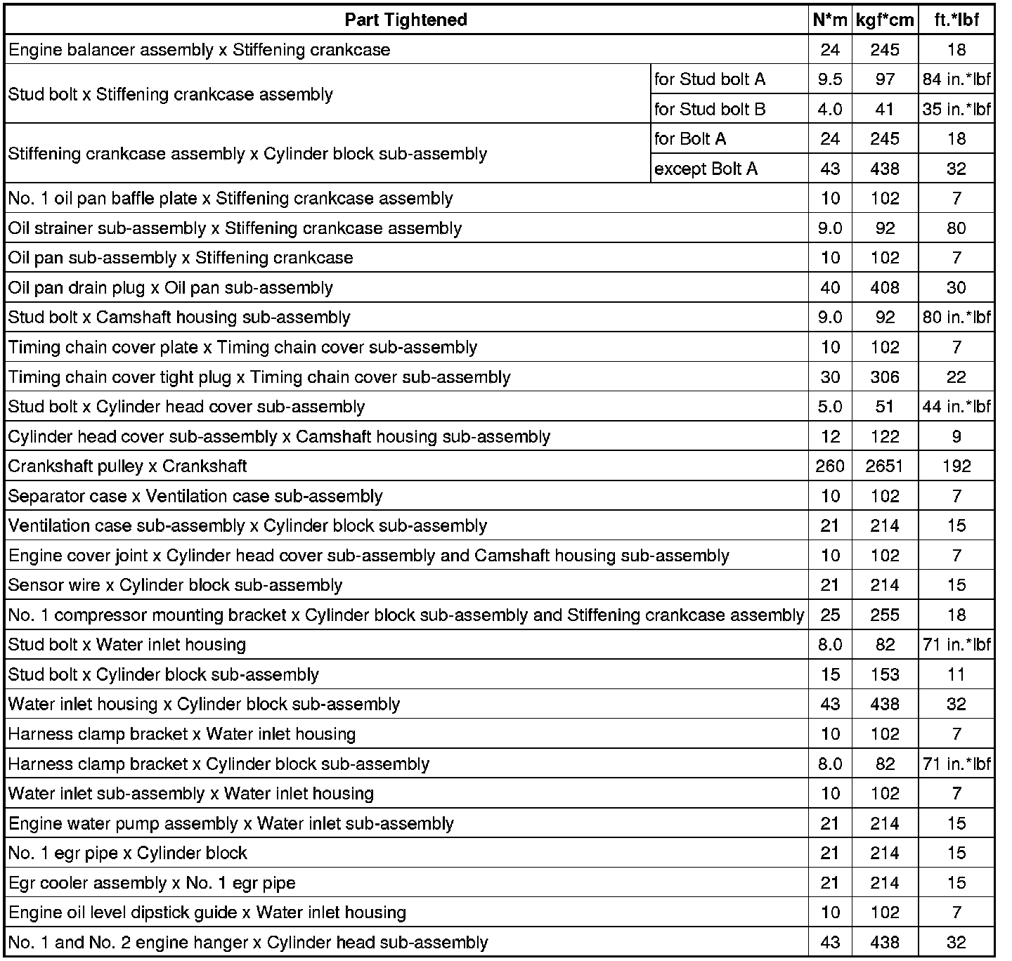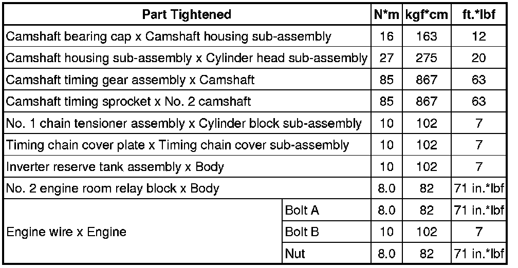 SPECIFICATIONS: 2AR-FXE ENGINE MECHANICAL: TORQUE SPECIFICATIONS