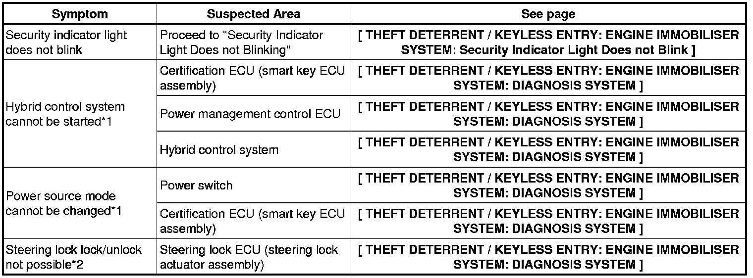 * *2: Refer to Problem Symptoms Table for Steering Lock System.