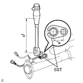 (a) Using SST, install the heated oxygen sensor to the front exhaust pipe assembly.