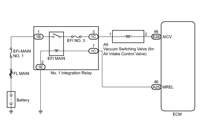 NG -- CHECK HARNESS AND CONNECTOR (NO. 1 INTEGRATION RELAY - VACUUM SWITCHING VALVE (FOR AIR INTAKE CONTROL VALVE))