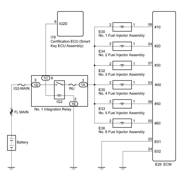 2GR-FE ENGINE CONTROL: SFI SYSTEM: Fuel Injector Circuit