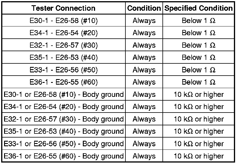 NG -- CHECK HARNESS AND CONNECTOR (NO. 1 INTEGRATION RELAY - FUEL INJECTOR ASSEMBLY)