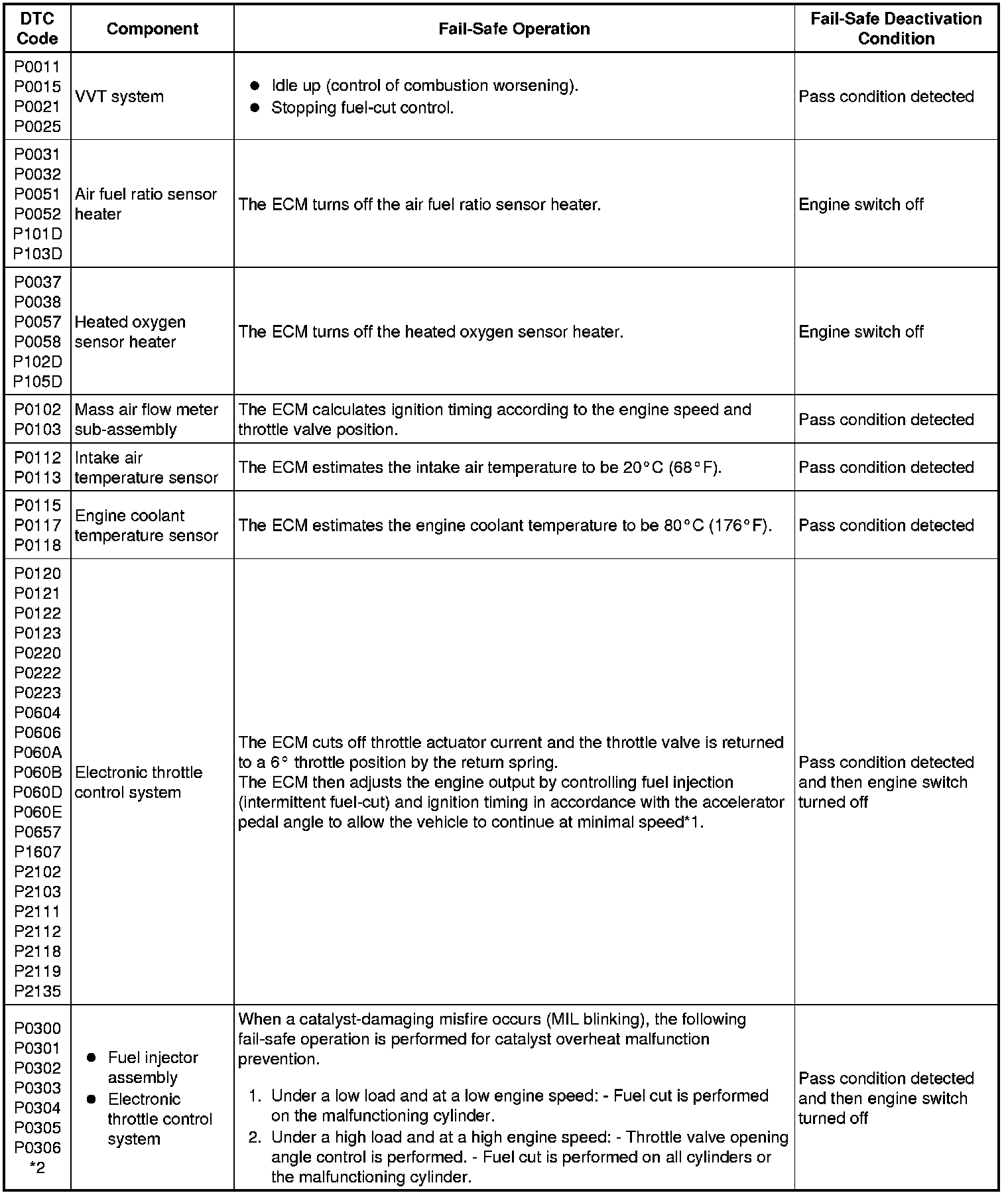 *2: Misfire-related fail-safe operations occur when catalyst overheat malfunctions occur.