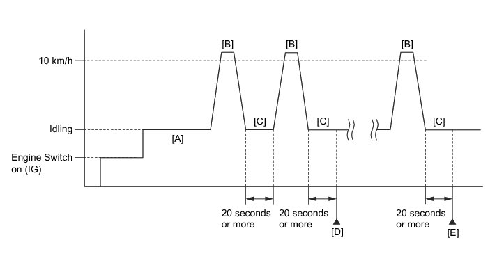 * Warm up the engine (engine coolant temperature is 80°C (176°F) or higher, air conditioning and all accessories are off) [A].