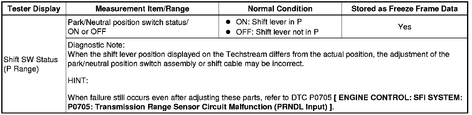 Shift SW Status (P Range)