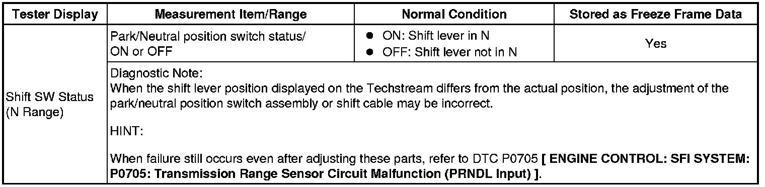 Shift SW Status (N Range)