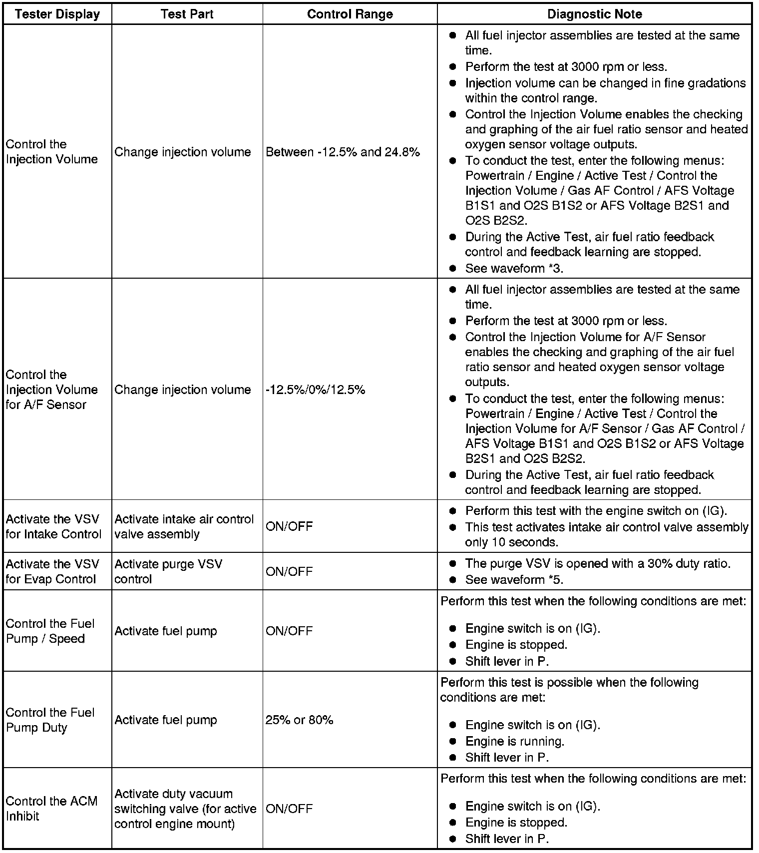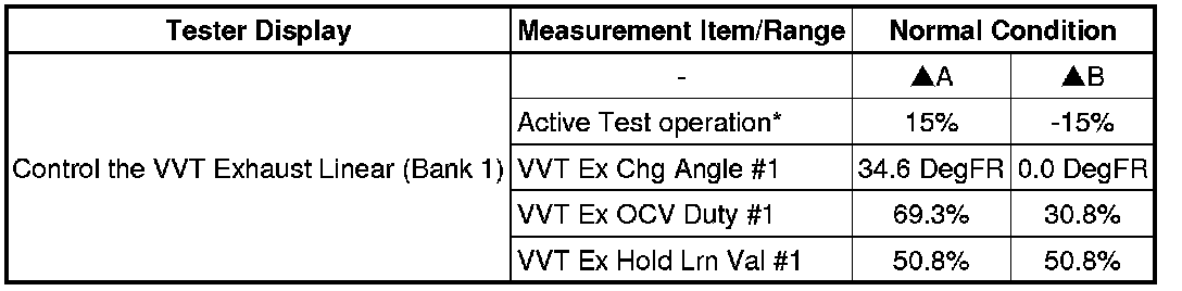 * *: Change the control value for Control the VVT Exhaust Linear to 15% or -15%.