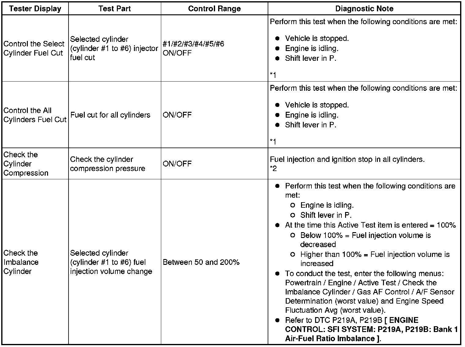 (2) Enter the Control the Select Cylinder Fuel Cut.