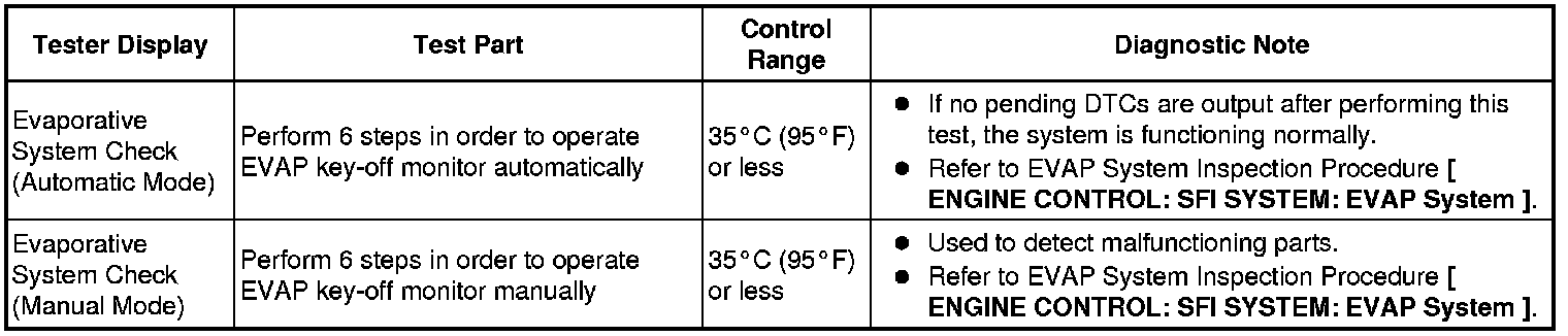 (e) Perform the System Check by referring to the table below.