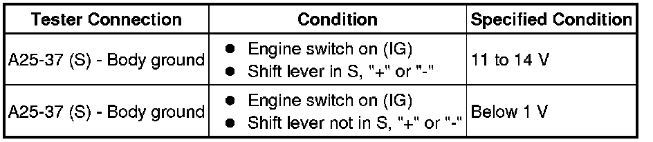 When the shift lever is in S and it is moved toward "-" or "+", it is possible to select different shift ranges (1st through 6th ranges).