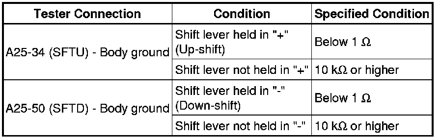 (a) Measure the resistance between each terminal of the transmission control switch when the shift lever is moved to each position.
