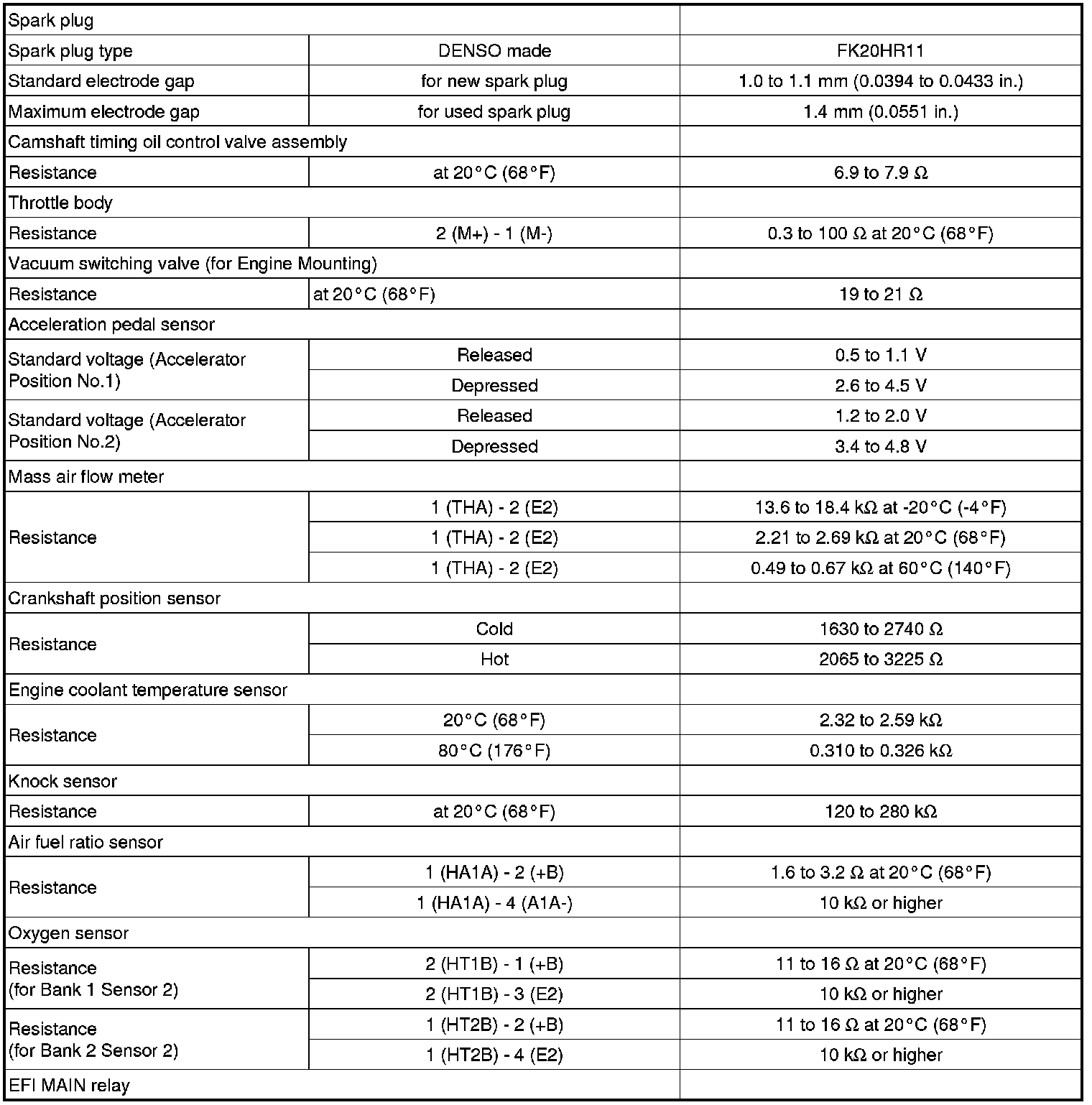 SPECIFICATIONS: 2GR-FE ENGINE CONTROL: SERVICE DATA