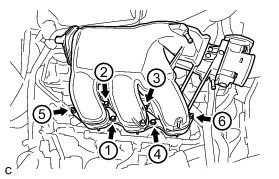 INTAKE MANIFOLDInstall and tighten the 6 bolts and 4 nuts uniformly in several steps.