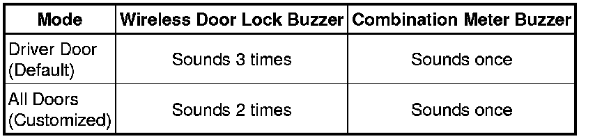 (c) The certification ECU (smart key ECU assembly) sounds the wireless door lock buzzer and combination meter buzzer to inform the user that the mode has been switched.