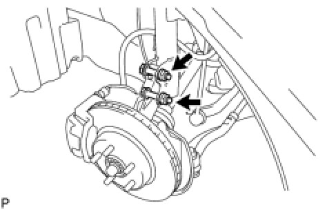 (j) Install the front speed sensor and the front flexible hose to the front shock absorber with the bolt.
