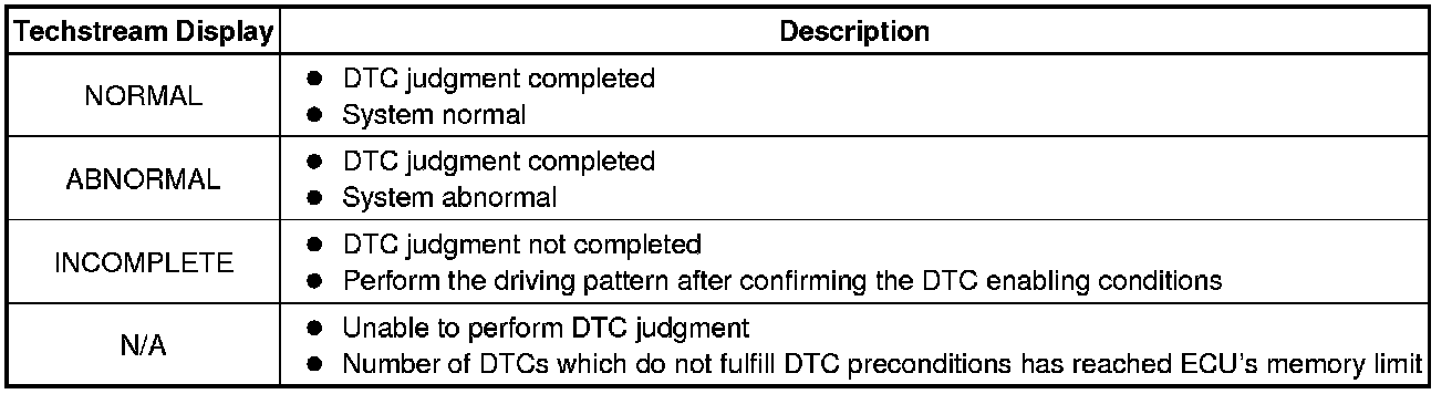 * With "ALL READINESS", you can check whether or not the DTC judgment has been completed by using the Techstream.