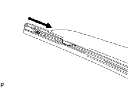 (b) Install the wiper rubber to the front wiper blade with the tip of the rubber (curved end) facing the axis of the wiper arm.