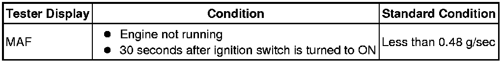 * If the result is not as specified, replace the mass air flow meter.