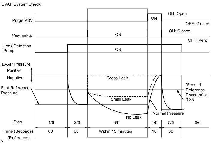 (b) Compare the EVAP pressure in step 3/6 and the second reference pressure (step 5/6).
