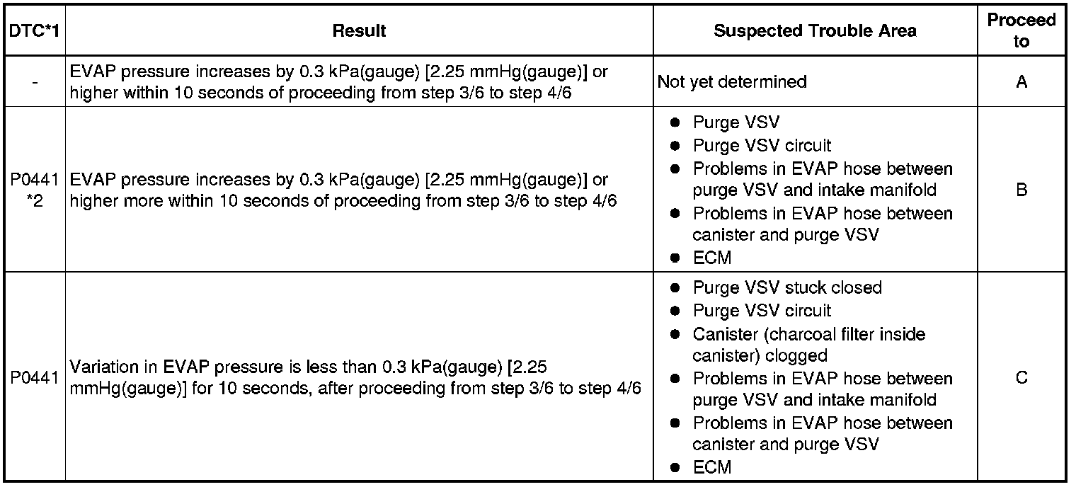 * *2: This result suggests that due to purge line blockage or purge VSV malfunction, the DTC was stored by the purge flow monitor while the engine was running, or that key-off monitor test result were nearly borderline values.