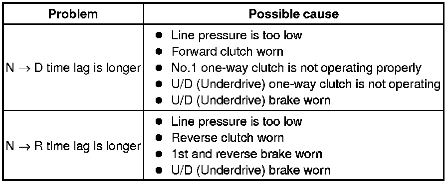 (5) Shift the lever from N to D position. Using a stop watch, measure the time from when the lever is shifted until the shock is felt.