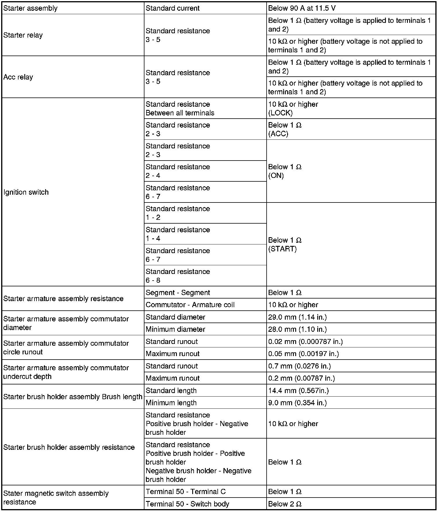 SPECIFICATIONS: 2AZ-FE STARTING: SERVICE DATA
