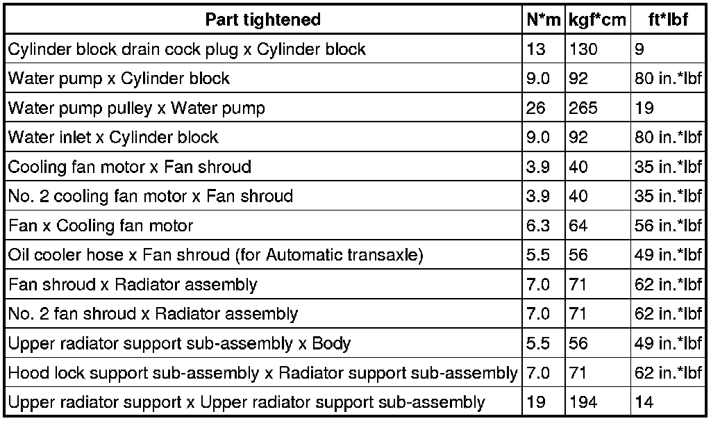 SPECIFICATIONS: 2AZ-FE COOLING: TORQUE SPECIFICATIONS