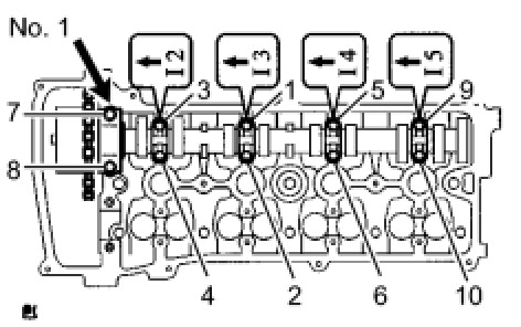 Uniformly tighten the 10 bearing cap bolts in the sequence shown in the illustration.