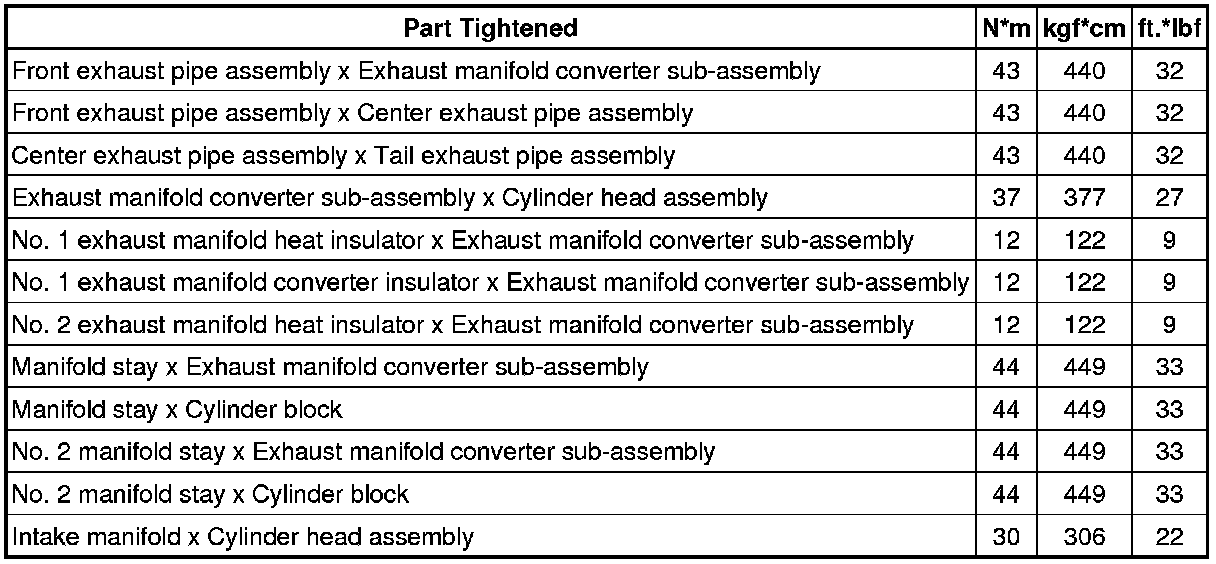 SPECIFICATIONS: 2AZ-FE INTAKE / EXHAUST: TORQUE SPECIFICATIONS